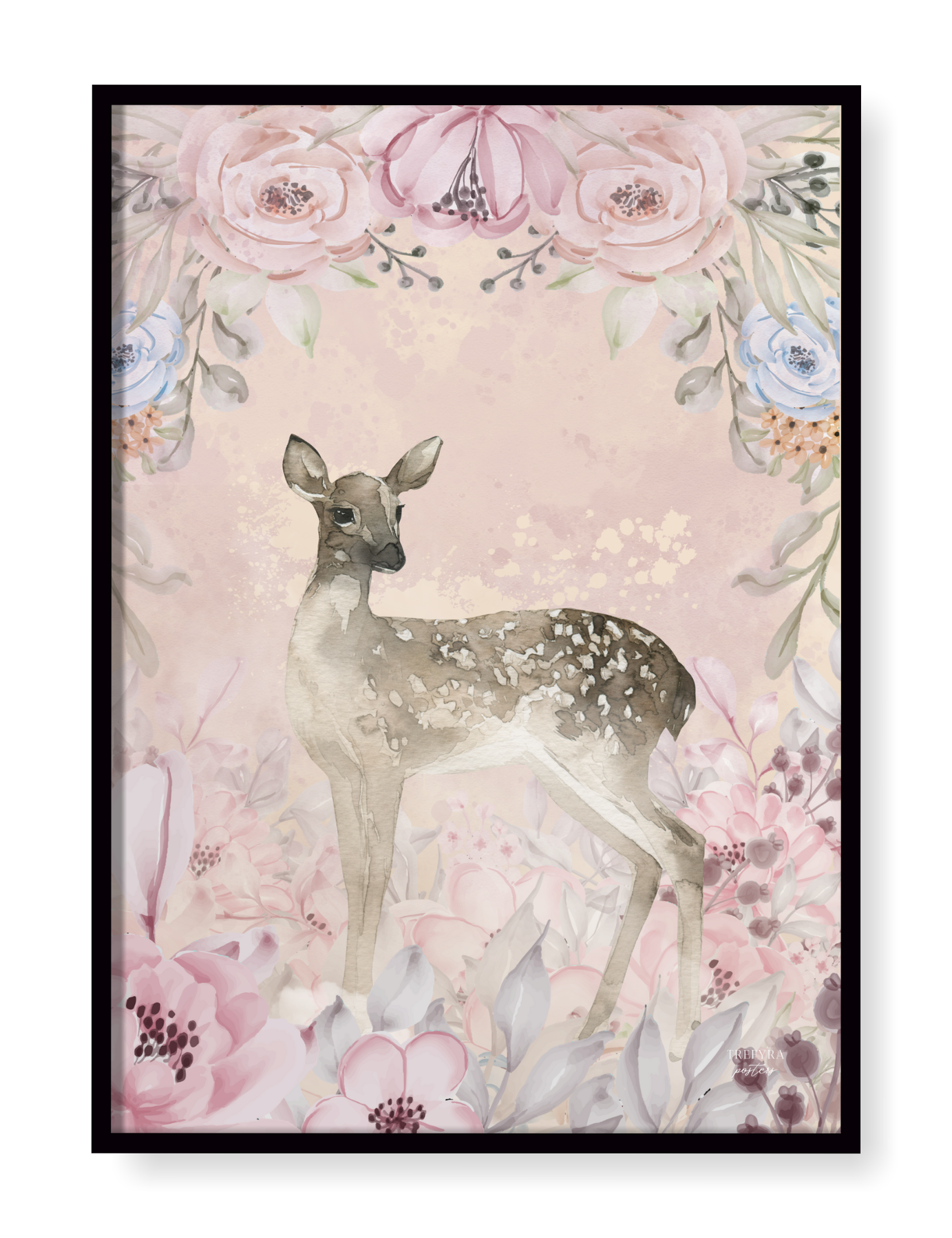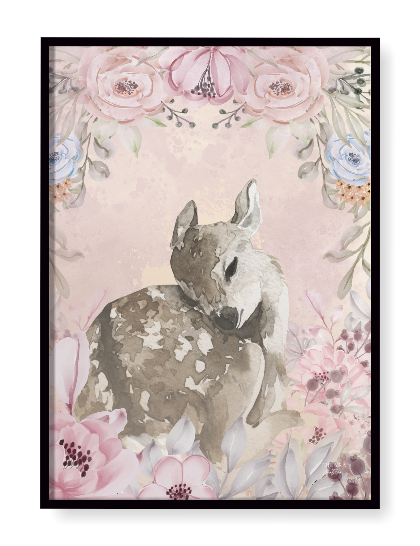 Mysiga barnposters för dig som gärna inreder med mjuka och lugnande färger med en klick chabby! Här blir vi välkomnade av de vackra och harmoniska hjortdjuren och kaninerna i vackra och rogivande färger i akvarell.