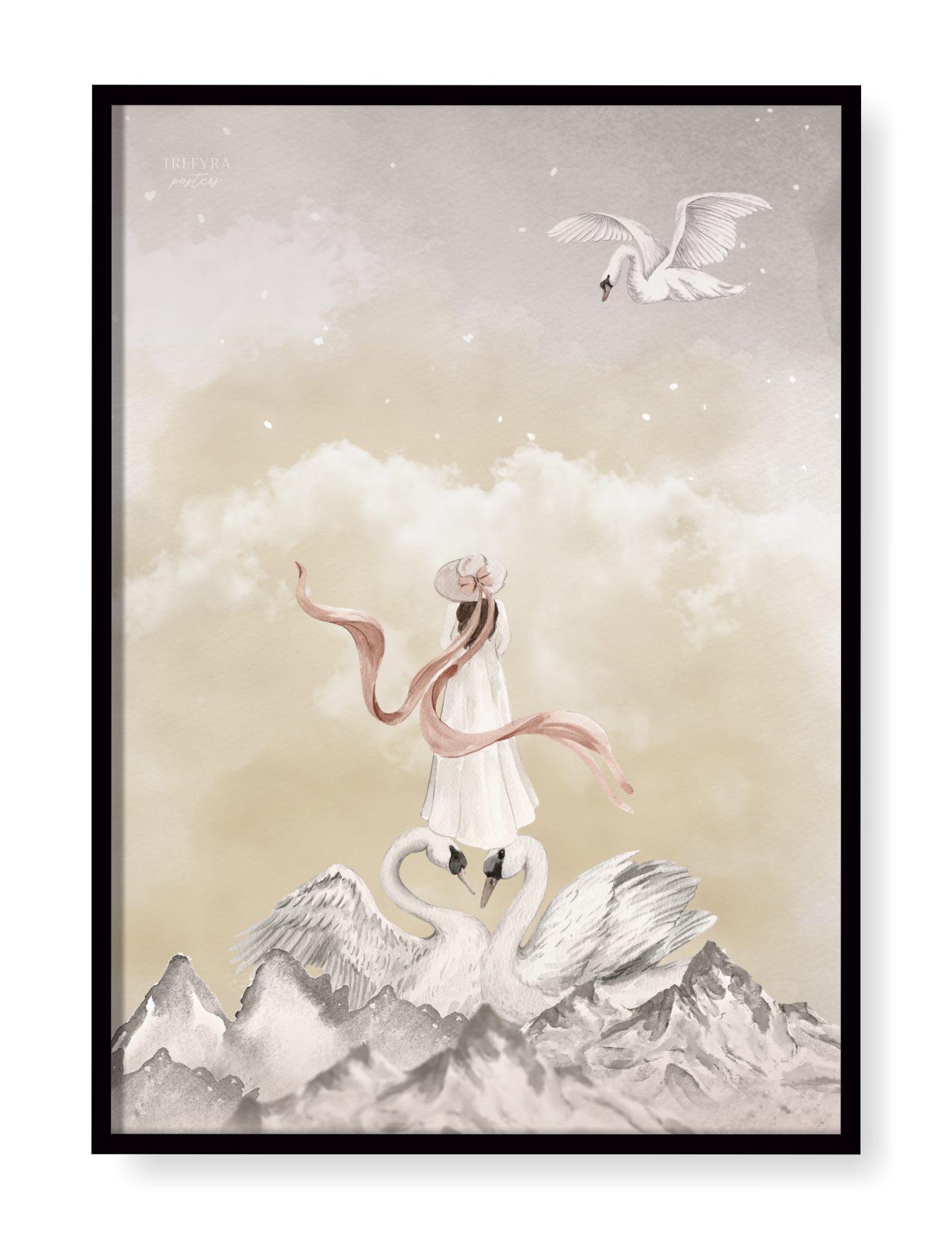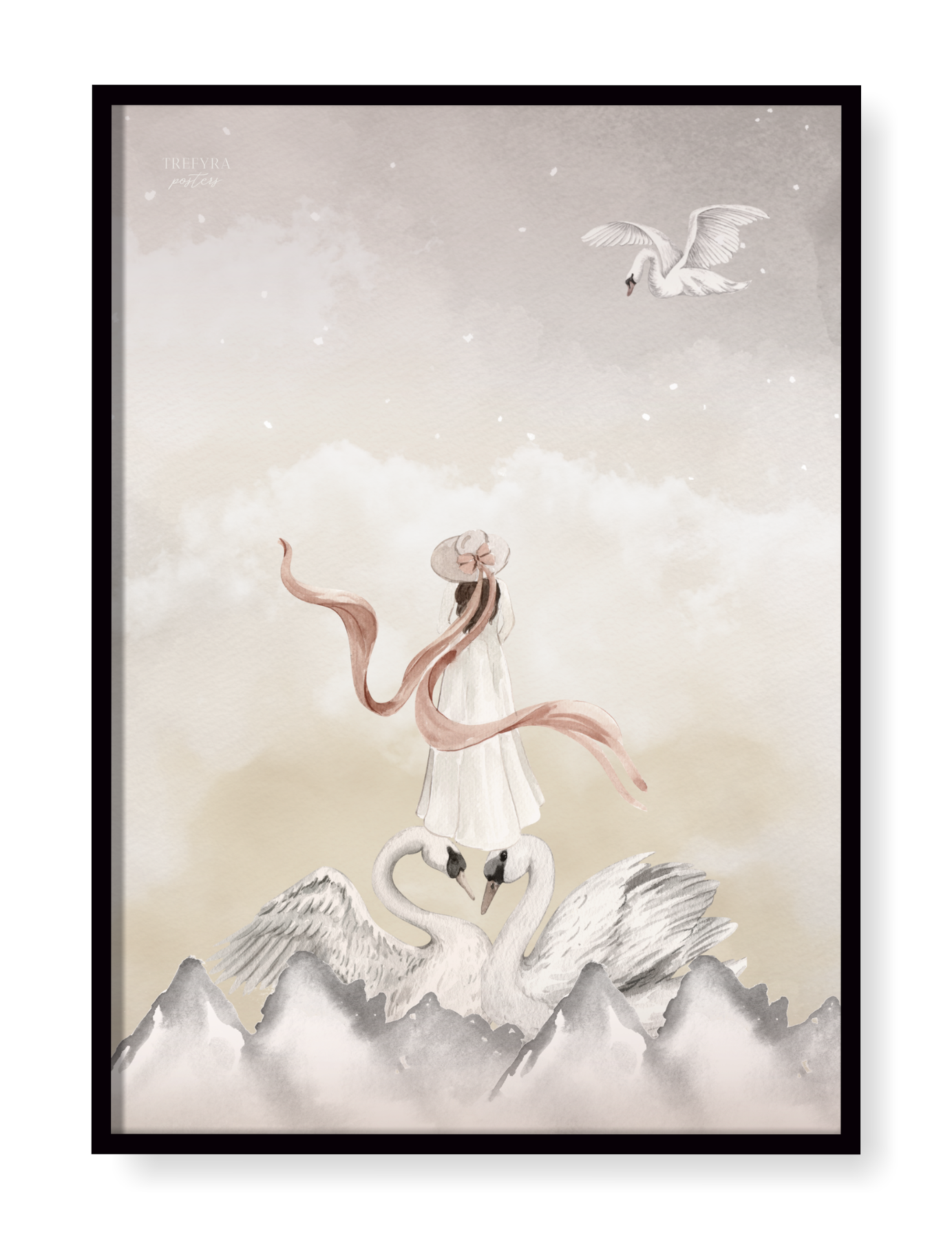 Hur känns det att titta över horisonten där svanarna bor? Denna poster tar ditt barn till drömmarnas land, där svanar och magiska ting hör till. Illustrationer i akvarell. Finns i två varianter!