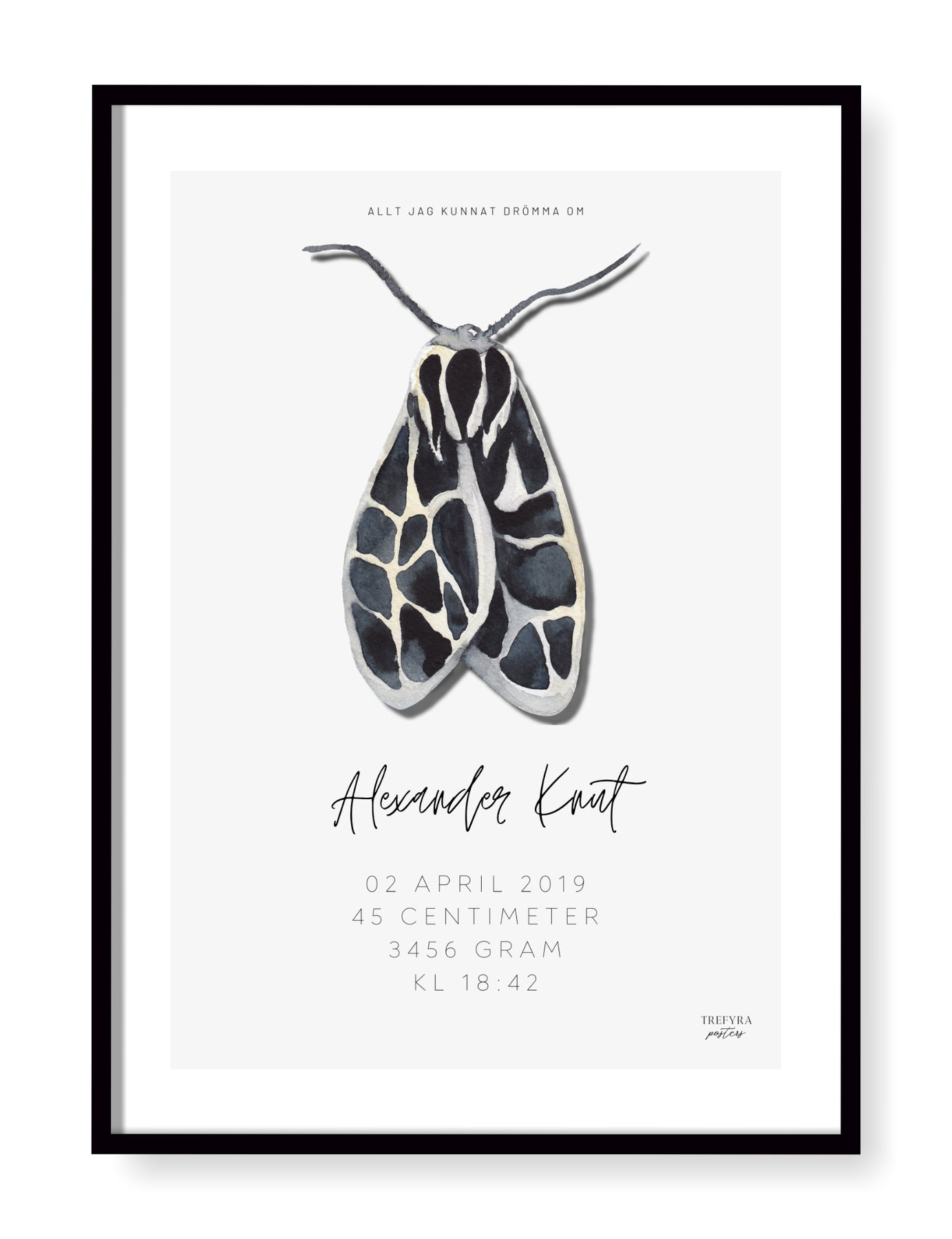En mysig och elegant kollektion där malfjärilarna vackert dekorerar barnets födelsetavla.