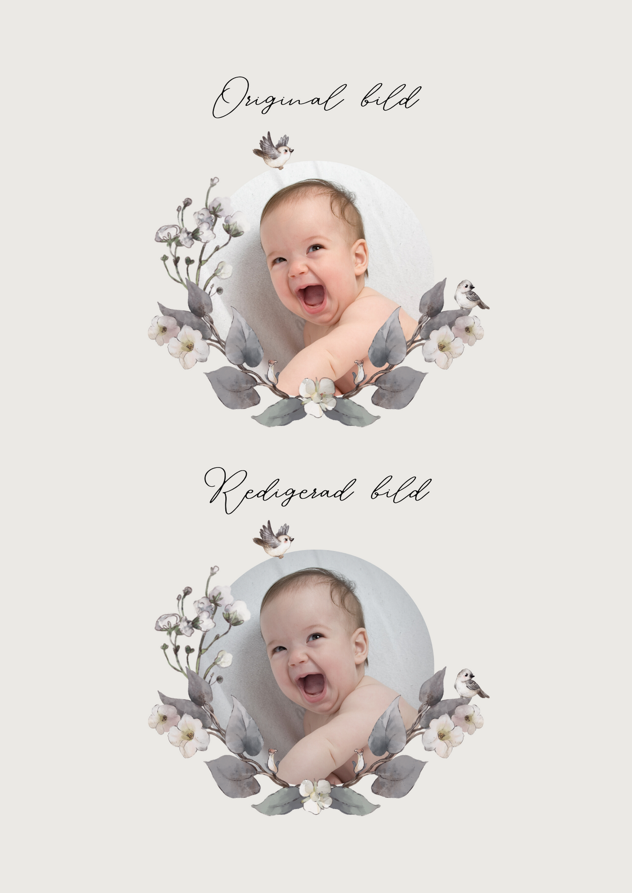 Vi redigerar din bild för att den bättre ska passa in med de övriga motiven. Skulle du vilja ha din originalbild så meddela oss i fältet "order notering" i kassan.