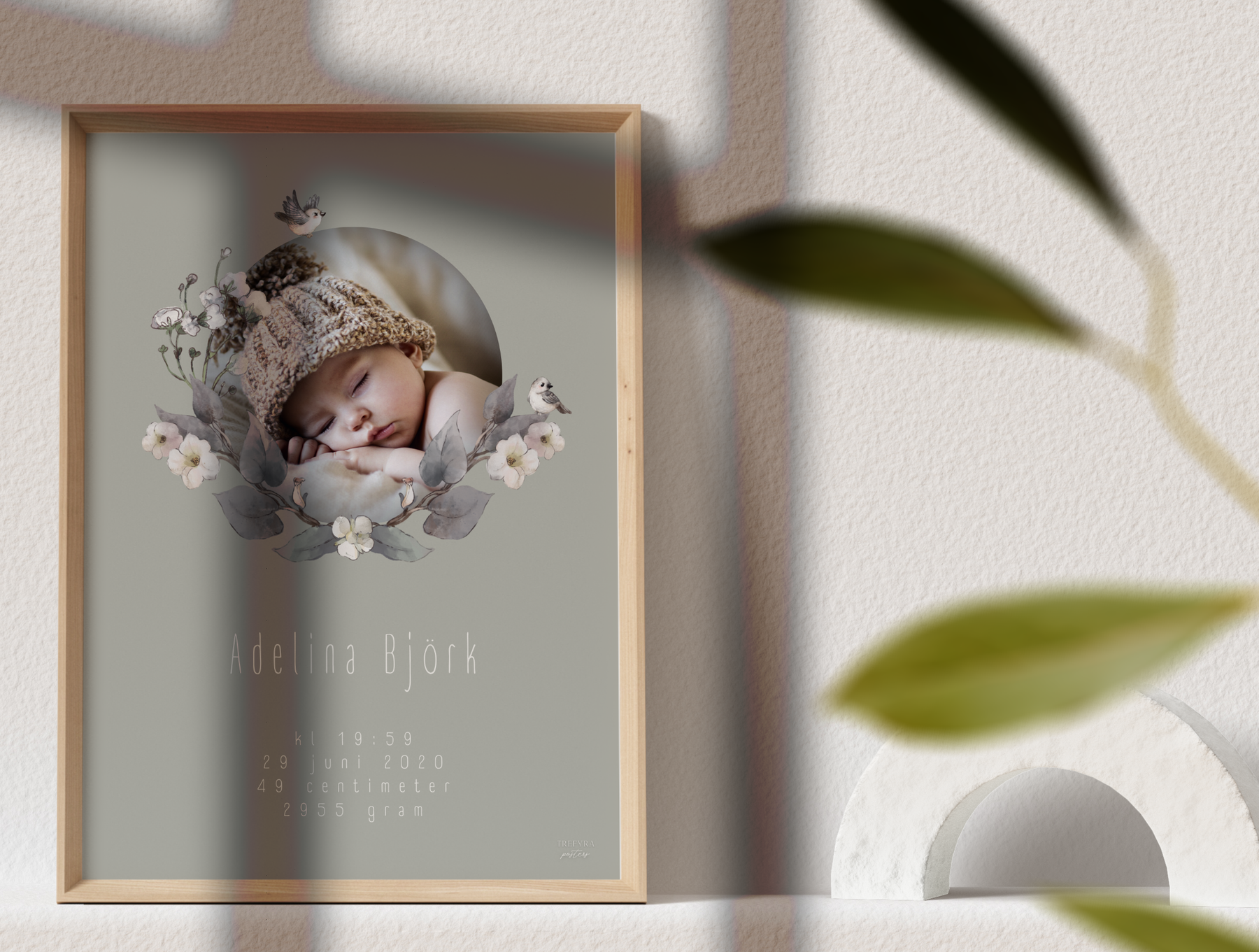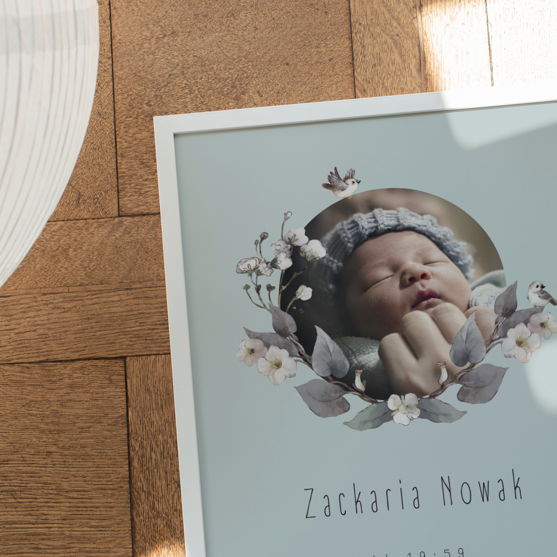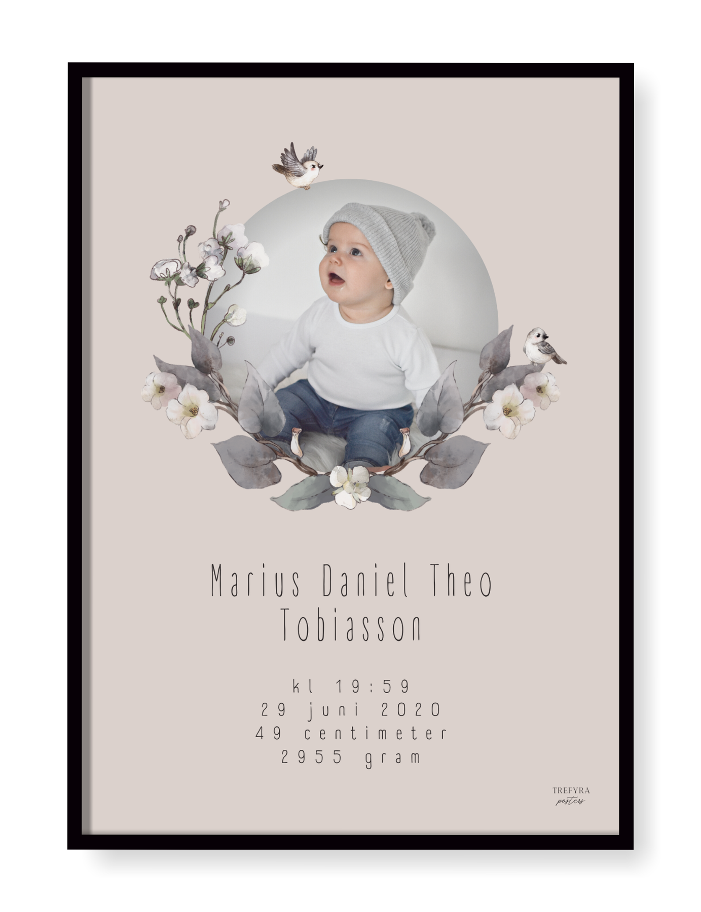 Underbar födelsetavla med egen bild som vackert hyllar ditt barns födsel. Här väljer du bakgrund efter smak och vi kan lova att varje är fin och unik på sitt sätt.
