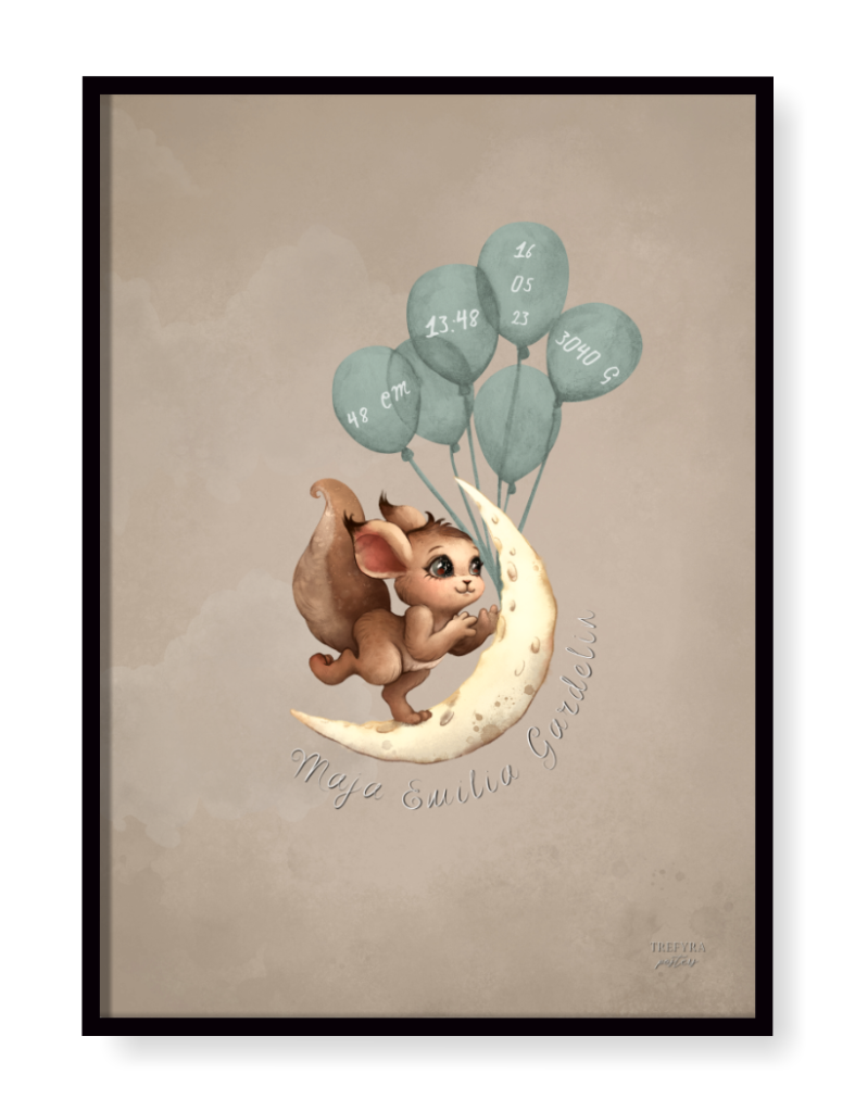 Här skriver vi barnets födelseuppgifter i ballongerna. Se gärna närbilderna.