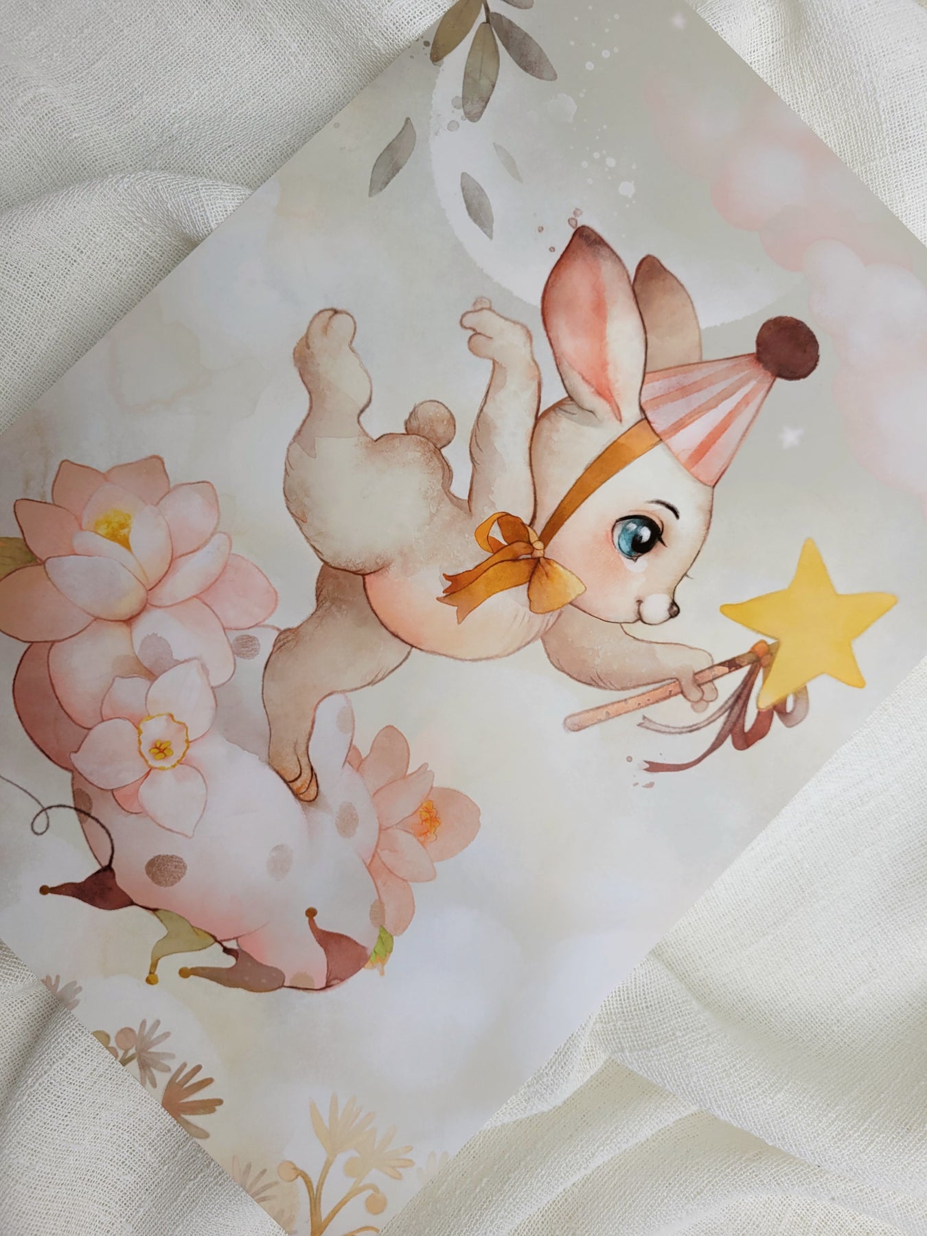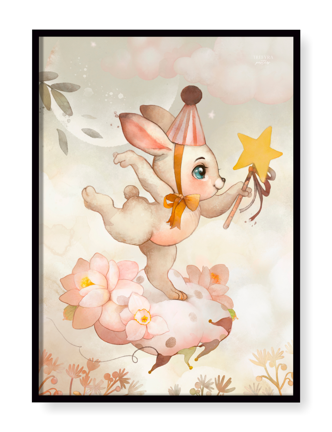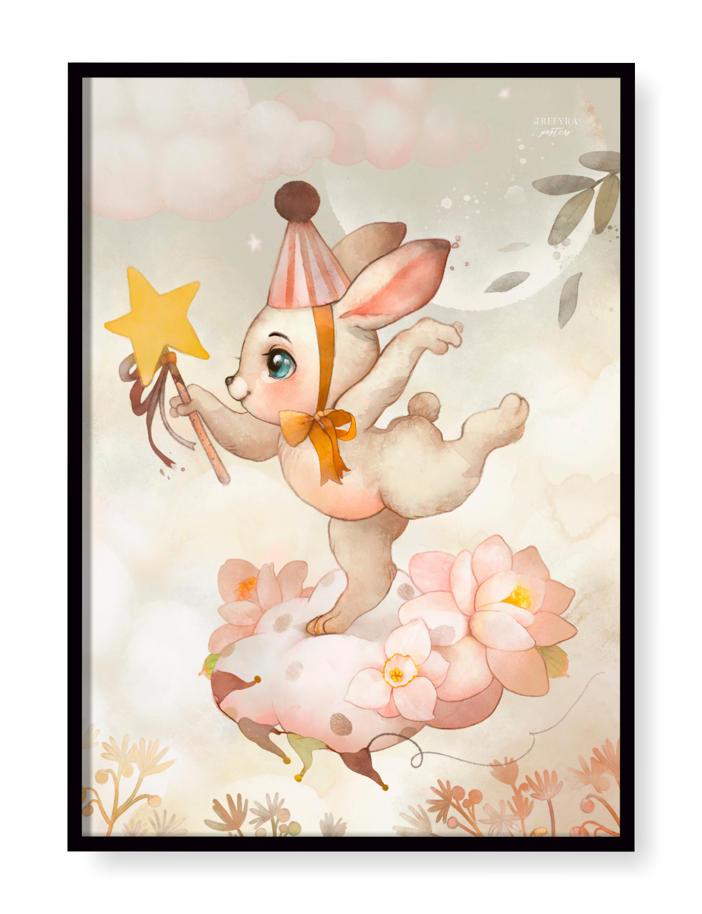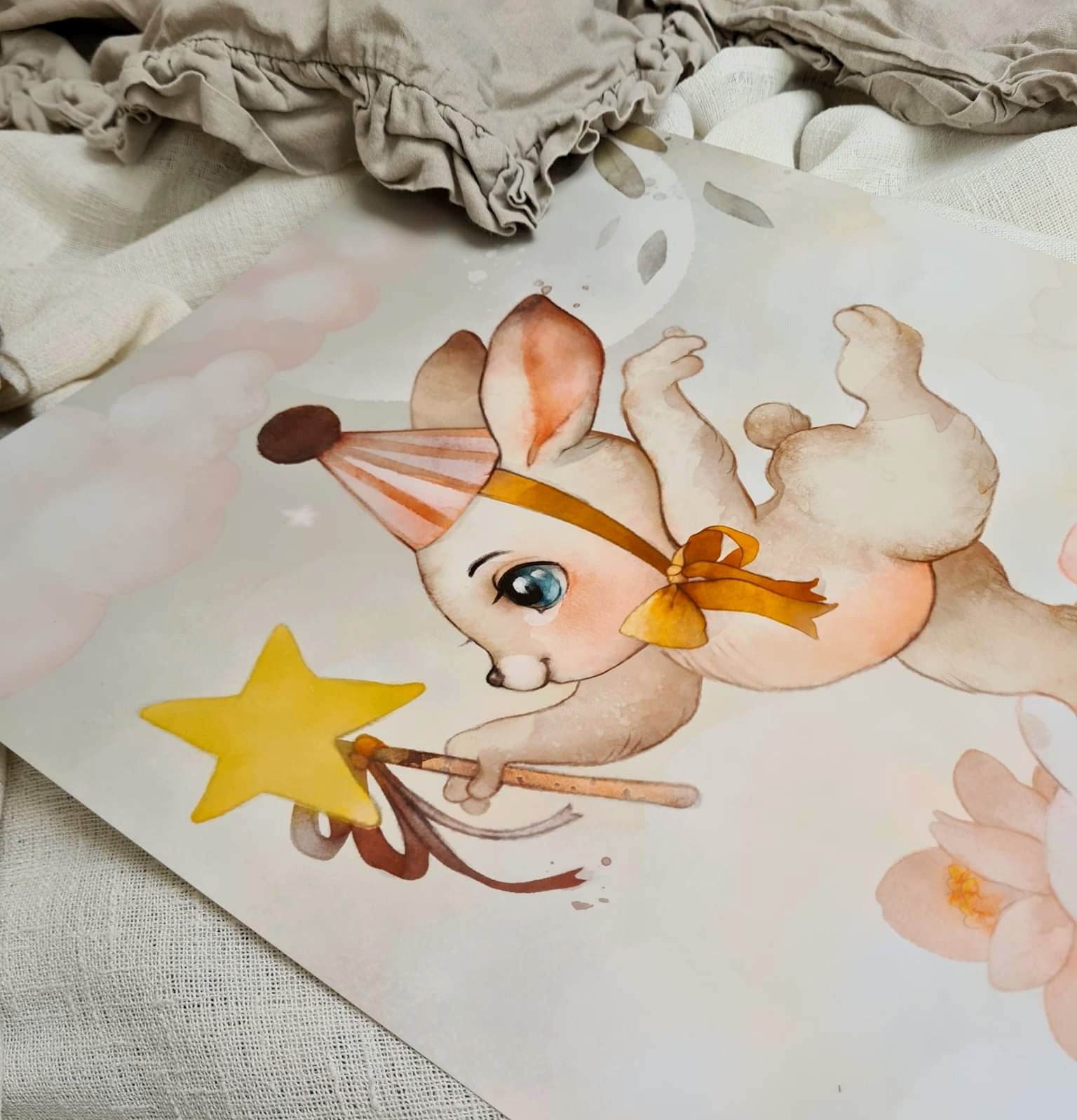 Barnposter från kollektionen Tranquil dreams som kommer utan personligt prägel. Här fångas magin och äventyret i akvarell med vackra och mjuka färger.