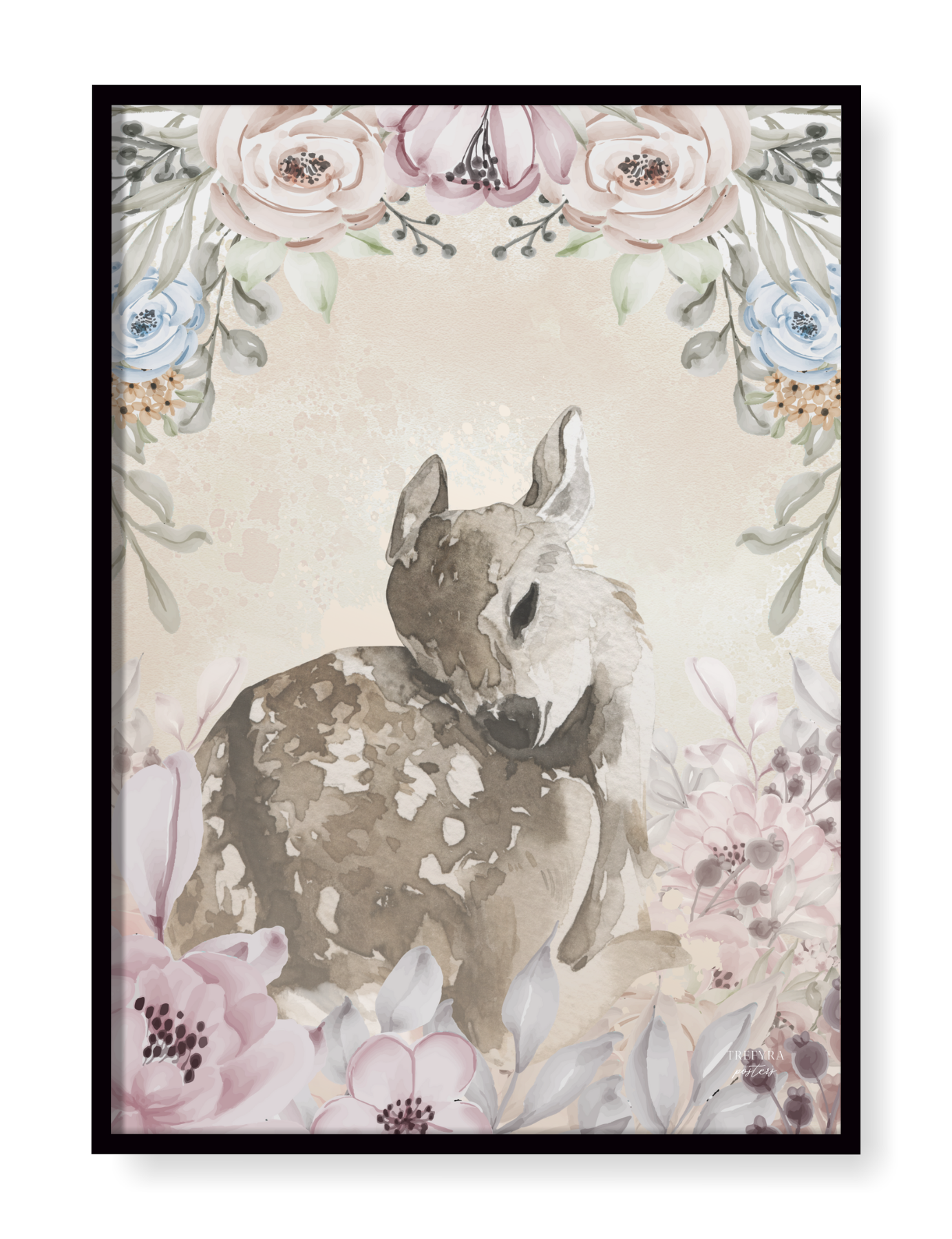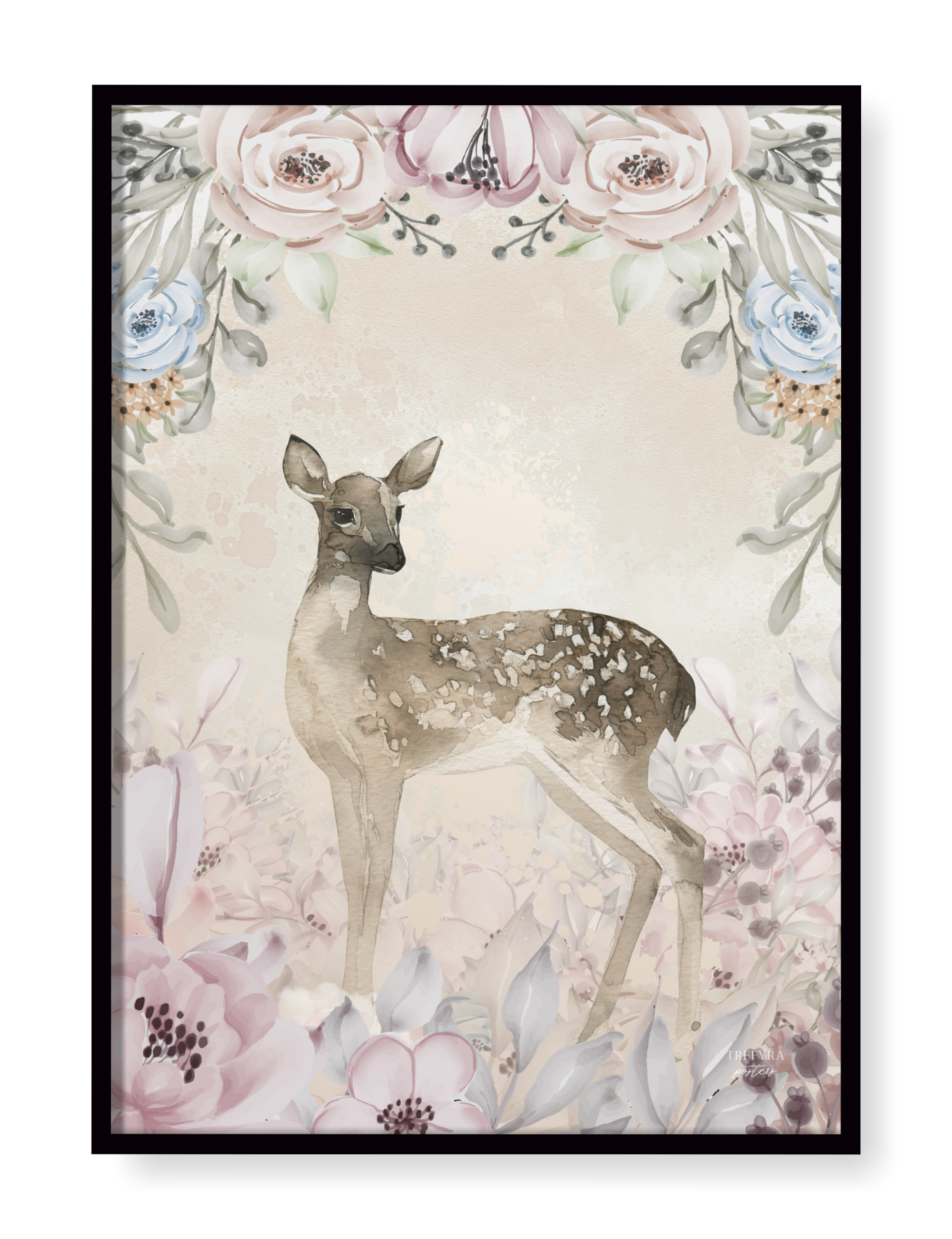 Mysiga barnposters för dig som gärna inreder med mjuka och lugnande färger med en klick chabby! Här blir vi välkomnade av de vackra och harmoniska hjortdjuren och kaninerna i vackra och rogivande färger i akvarell.