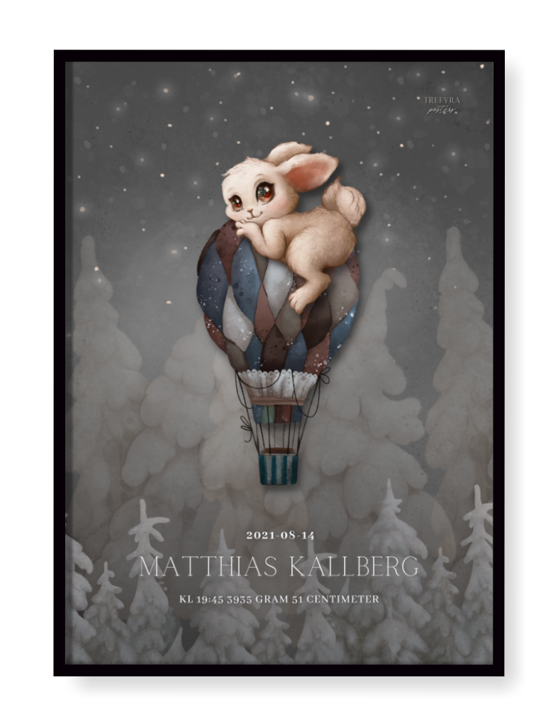 Födelsetavla som ingår i den vackra och förtrollande kollektionen Vintage Tale där samtliga posters är personliga.